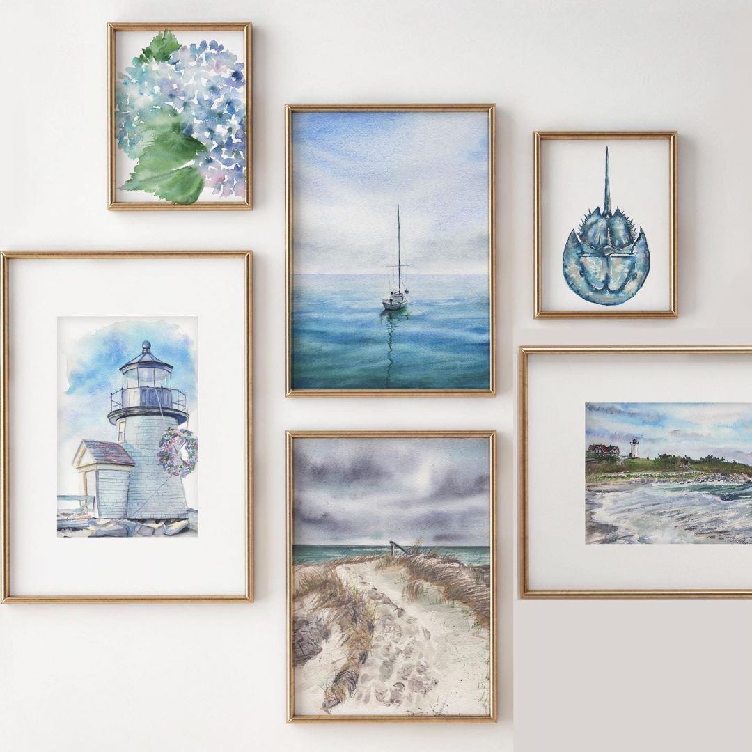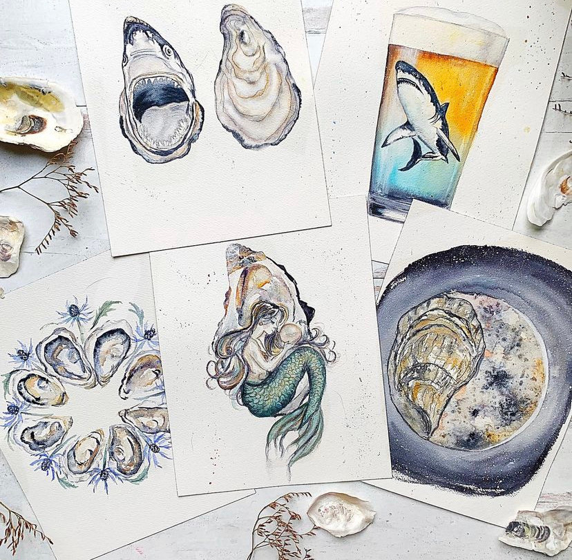 I’m primarily a watercolor artist. I paint a variety of subject matter ranging from landscapes tom sharks. A lot of what I paint is inspired by living near the beach, but I also paint any subject matter that I love or inspires me. I know it’s usually considered bad practice in branding or art, not to niche down your subject matter, but I made a promise to myself when I started painting that I would just always paint what made me happy, and for me that changes a lot. Although I had some formal training of painting and art in other mediums from a few classes I took in college, a majority of my watercolor skills I learned from online classes. When I first started a few years ago, I wanted to learn everything about it, I took so many classes online and watched so many youtube tutorials, I read books, and practiced every tutorial I kind find. I just really enjoyed working in watercolor and was excited to progress my skills and be able to comfortably paint what I wanted to paint. I would watch video after video on the simplest skills, that now I kind of laugh about how hard some of those skills seemed at the beginning for me, some that now come completely second nature. It helped teach me to be patient and appreciate the progress. I’m still a very harsh critic of my own work, and more often than not worry about sharing pieces that I might deem not as good. It’s also more often than not my favorite pieces differ from those that share them with, because usually my favorite pieces aren’t necessarily because of the subject matter, but because I the challenges i overcame in specific pieces, figuring out a skill I didn’t know before, or the ultimate triumph of having a vision for a piece in your head and being able to fully execute it on paper. I still forget sometimes that I get to do this for a living, especially during stressful busy times for my business, but when I’m sitting at my desk painting, sometimes it hits me that I’m “working” , and how lucky I am.