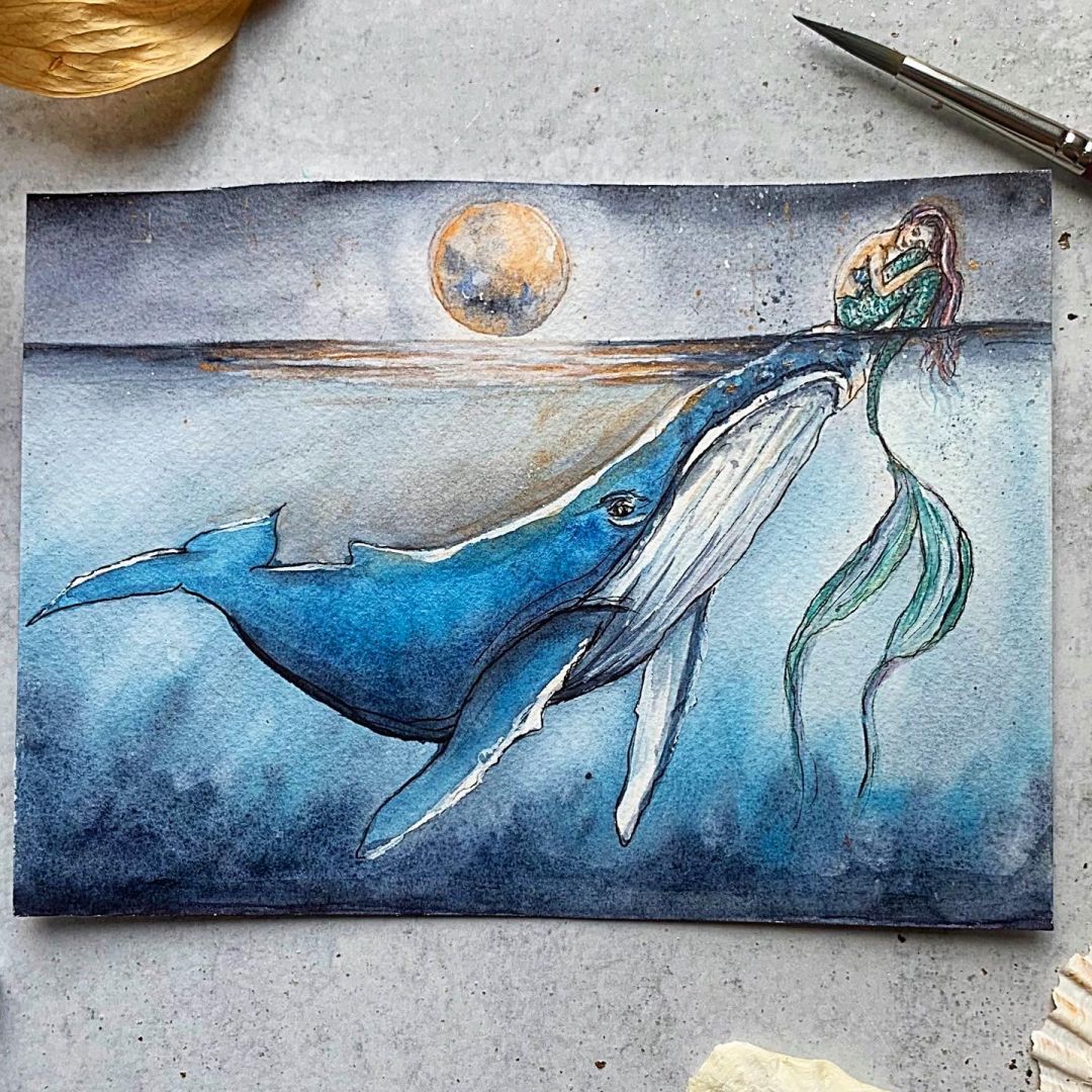 I’m primarily a watercolor artist. I paint a variety of subject matter ranging from landscapes tom sharks. A lot of what I paint is inspired by living near the beach, but I also paint any subject matter that I love or inspires me. I know it’s usually considered bad practice in branding or art, not to niche down your subject matter, but I made a promise to myself when I started painting that I would just always paint what made me happy, and for me that changes a lot. Although I had some formal training of painting and art in other mediums from a few classes I took in college, a majority of my watercolor skills I learned from online classes. When I first started a few years ago, I wanted to learn everything about it, I took so many classes online and watched so many youtube tutorials, I read books, and practiced every tutorial I kind find. I just really enjoyed working in watercolor and was excited to progress my skills and be able to comfortably paint what I wanted to paint. I would watch video after video on the simplest skills, that now I kind of laugh about how hard some of those skills seemed at the beginning for me, some that now come completely second nature. It helped teach me to be patient and appreciate the progress. I’m still a very harsh critic of my own work, and more often than not worry about sharing pieces that I might deem not as good. It’s also more often than not my favorite pieces differ from those that share them with, because usually my favorite pieces aren’t necessarily because of the subject matter, but because I the challenges i overcame in specific pieces, figuring out a skill I didn’t know before, or the ultimate triumph of having a vision for a piece in your head and being able to fully execute it on paper. I still forget sometimes that I get to do this for a living, especially during stressful busy times for my business, but when I’m sitting at my desk painting, sometimes it hits me that I’m “working” , and how lucky I am.