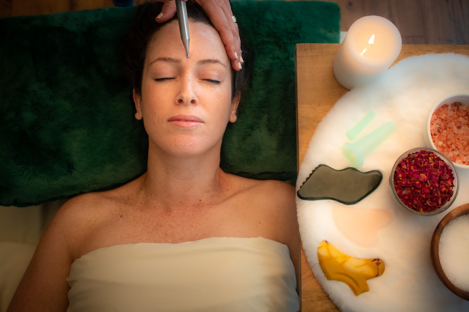 And in between all that? A facial healing session with me, of course! I’d want them to experience the kind of calm, glow, and grounding that I’ve built my entire business around.