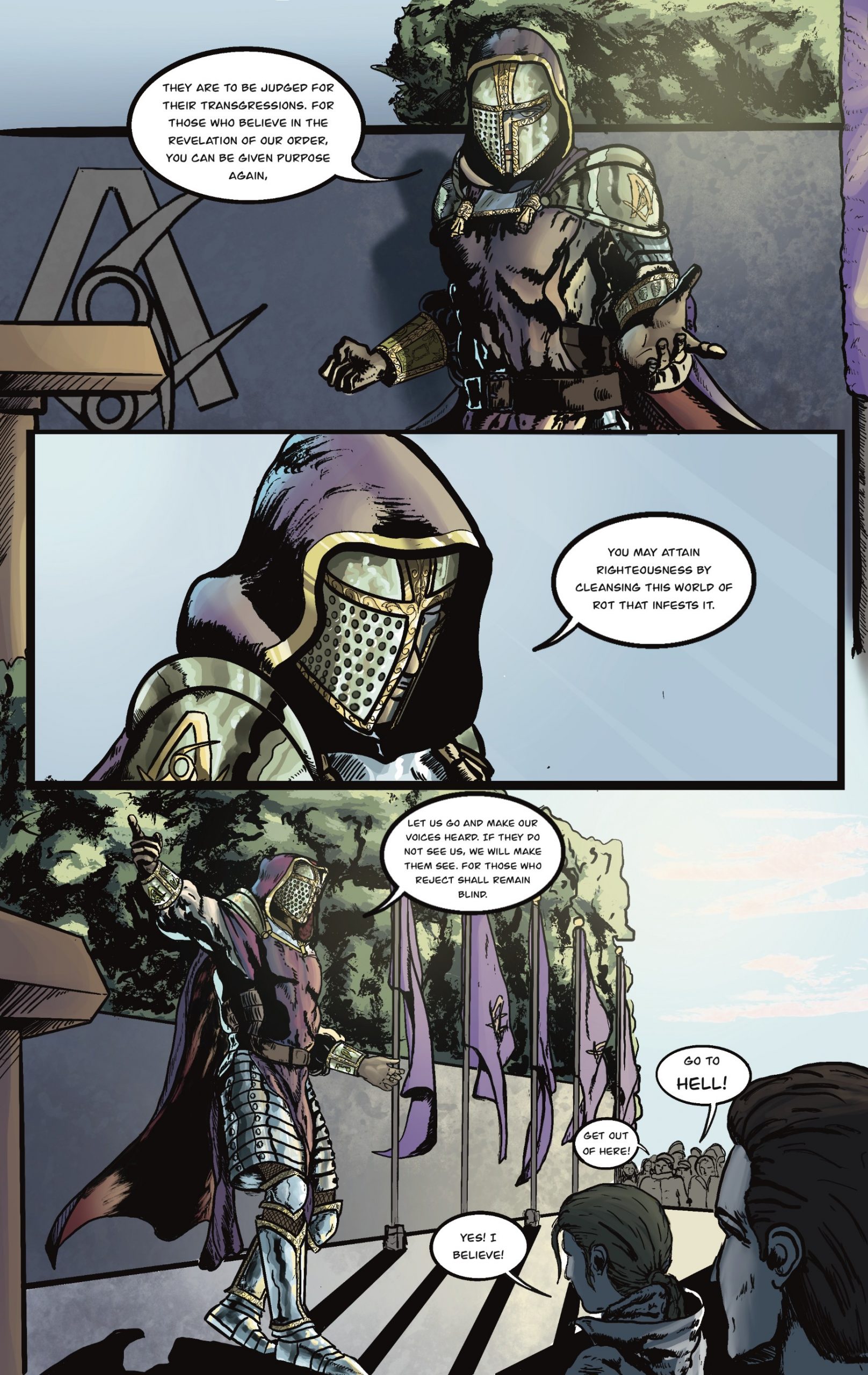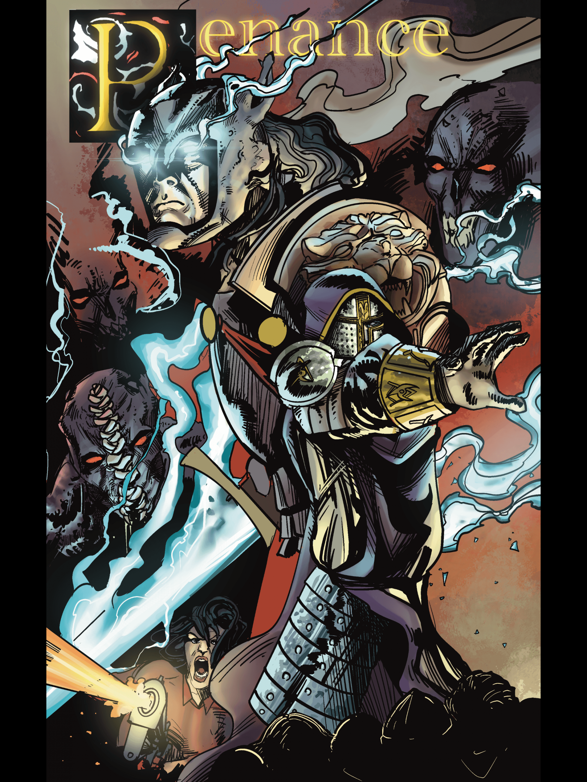 As for our stories, we knew they needed to be relevant. So we thrust our characters into the real world. Our characters have to face the burdens of the modern day society that each and every one of us have to. These heroes aren’t looked up to, they are villainized by society because they demand change. The Scribe, Noah’s character, wears the newspapers and evidence of the criminals he’s going after as his mask and exposes truth and corruption, turning him into a very polarizing figure in the more grounded world. Penance, my character, is a Templar knight who serves his punishment of immortality. So having seen and been involved in every human conflict in history to this day, he battles monsters of old in an our present world. They are flawed heroes in a flawed world. That’s why we knew they mattered and that’s how we came up with them.