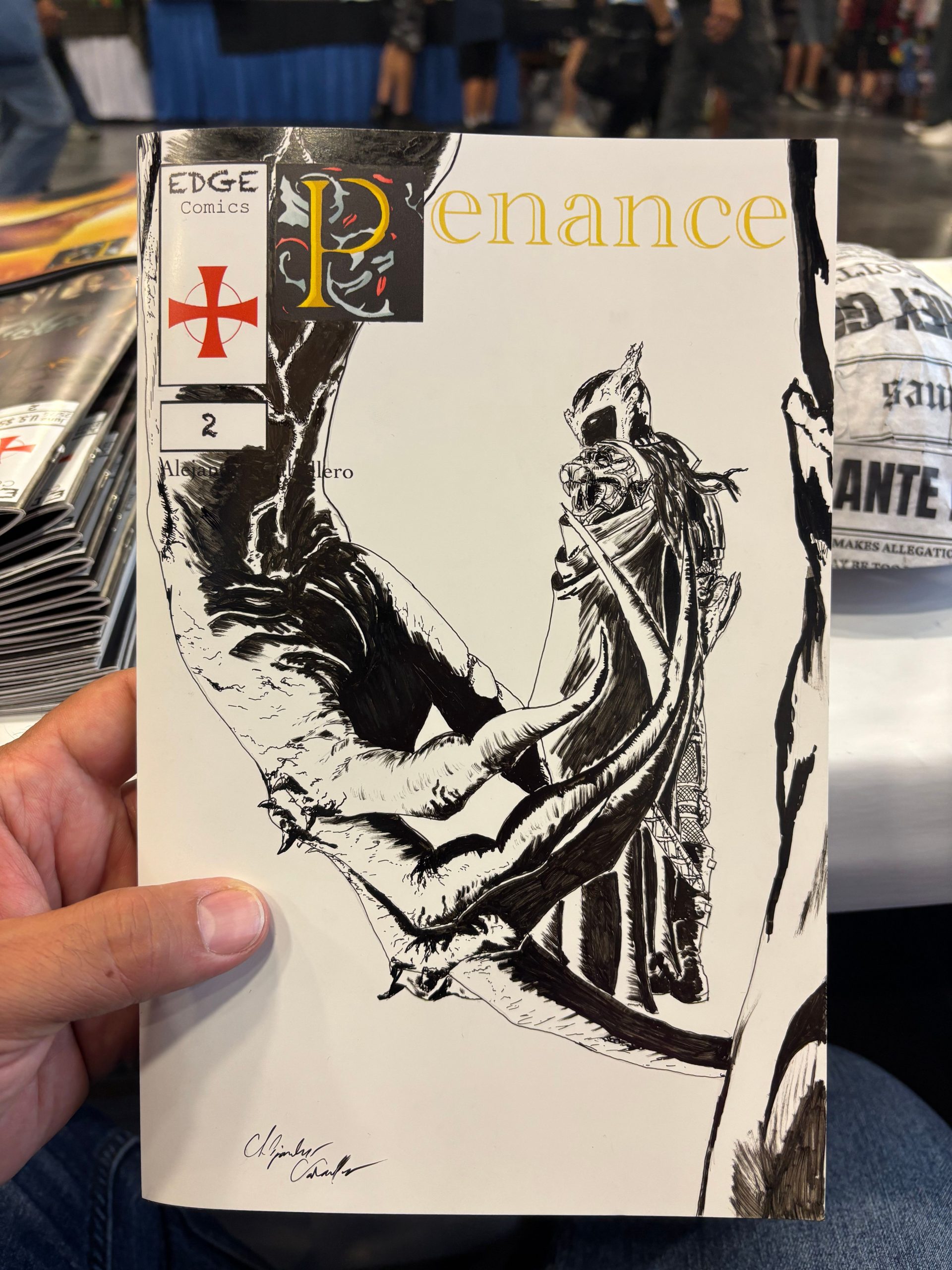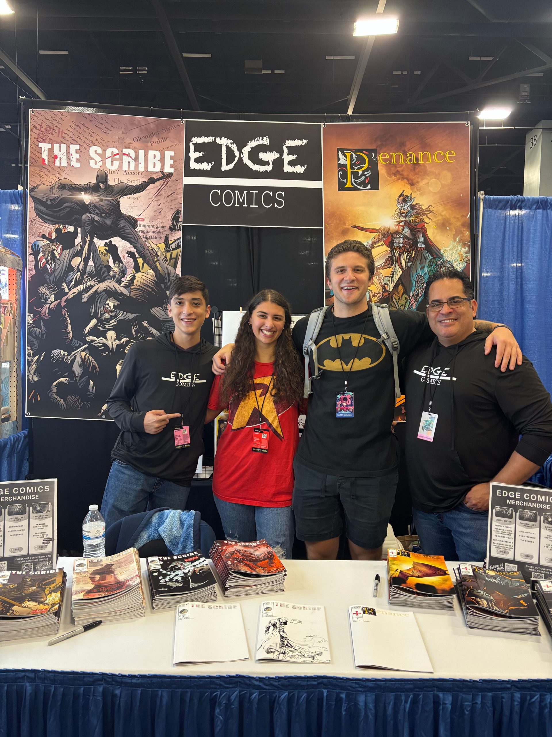Now, have there been challenges? Absolutely. What venture doesn’t have challenges? Of course, there are the normal challenges of self funding a project/business and dealing with the high cost of printing, and meeting deadlines. But, I think the biggest challenge has been how to prioritize time. Normally, there are around 5 people that work in a single title. This helps with workflow and meeting deadlines. Well, here at Edge Comics, we have me and my son, Noah. We are it. We write, draw, ink, color, and letter our own titles. Actually, Noah has gotten really great (and fast) with coloring that he has taken that on for both titles. Now, that’s a lot of work! Noah is still in high school, and I also have a full time job as an educator. On top of that, I need to be present for my wife and kids (we have three in total). So, I would say it is a challenge in prioritizing time. It’s easy for any artist in ANY art form to get sucked into their work. The great thing is that Edge Comics was formed as a family, so we do much of it as a family. Edge Comics is a fulfillment of three dreams. The first dream is my son’s dream of creating, writing and drawing his own comics/stories. The second dream is mine. I wanted to do exactly this in high school (when I first created what we know now as Penance). I thought the dream was not for me. And now, it has been resurrected. And the third, bringing my family together through it. There is nothing like getting the issues ready to print and getting things set up for a comic con, or going to some of our local stores to deliver issues that they want to sell. Working together is a true blessing.