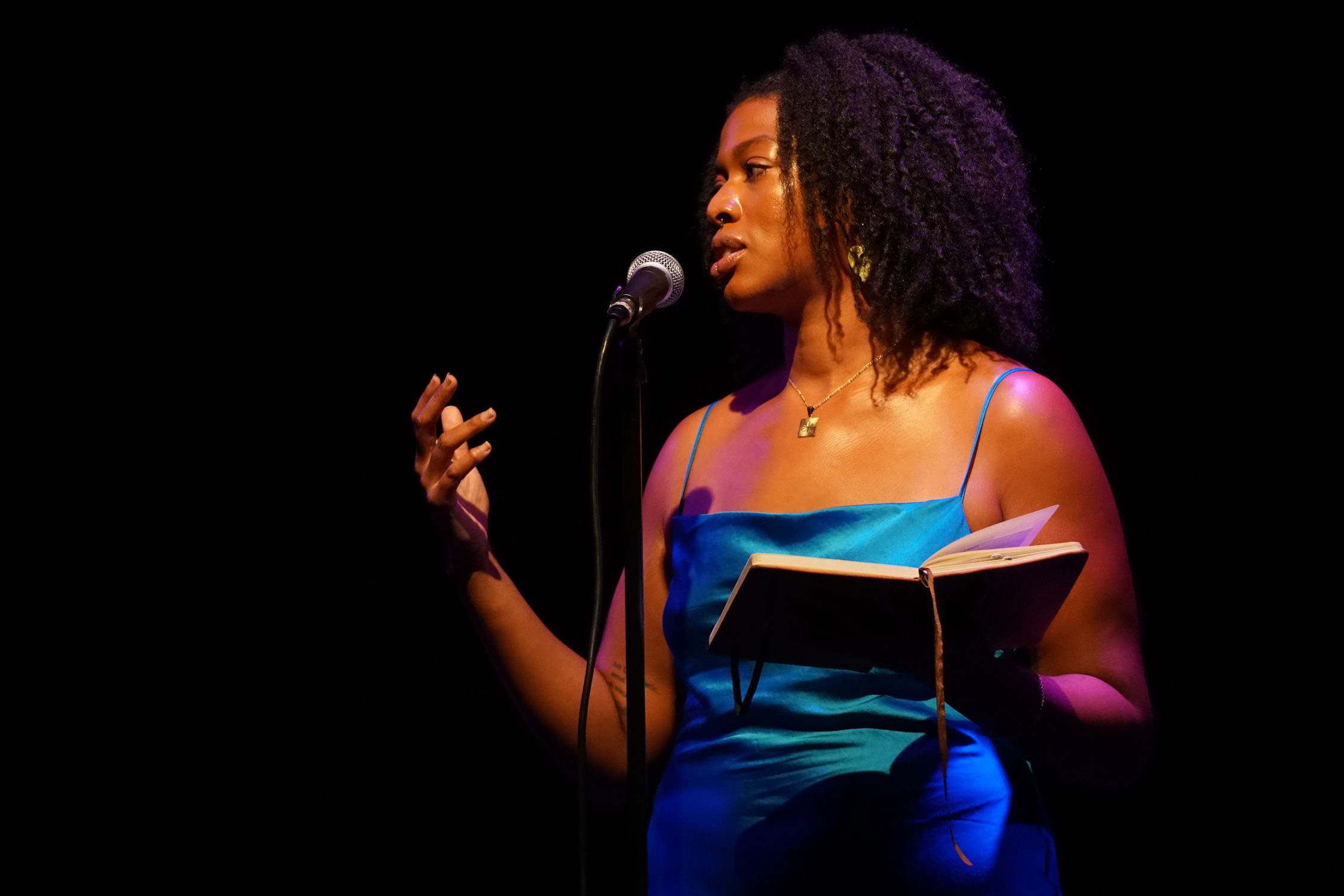 I grew up doing theatre and writing short stories and poems, but didn’t start performing as a literary artist until 2021. As someone who grew up a voracious reader (read: introvert) and then becoming a theatre kid in middle school, my biggest challenge was reconciling my nerves around performing my work and feeling like it wasn’t good enough to be shared in the first place. I decided at some point that I have to be okay being visible even if I’m scared. I overcame because even though I was scared, I did it anyway, and it was one of the most difficult choices I’ve had to make for myself.