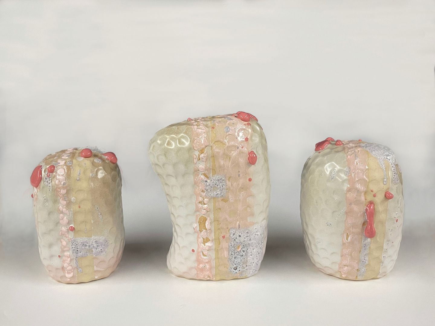 My work centers around a creative relationship with materials and processes, letting the act of making inform the finished work. I tease out material defects and stress the boundaries of what is traditional, melding the ancient and the contemporary. Recent work has been exploring the texture of surfaces, covering methodical indentations with textured glazes in painterly compositions on a simple form. A continuing body of work explores the movement of the clay in the kiln to produce gestural forms, including the cracks, slumps, and new forms that result. My installation work features seemingly unstable compositions of wood, ceramic objects, and fiber to suggest a precarious stability and a playful willingness to make choices despite certain uncertainty. All of us have faced great challenges these past few years, and every artist must push through uncertainty. I love that I get to work with these ideas in the physical realm. I have been pushing my boundaries for more than 15 years, through many sleepless nights and tireless efforts. From washing wool and making clay, to cleaning floors, firing kilns, and studying history, my life revolves around the joy of making.