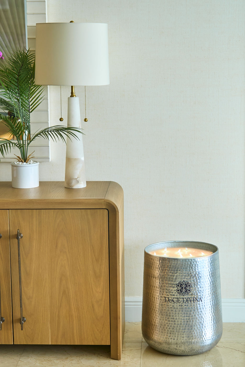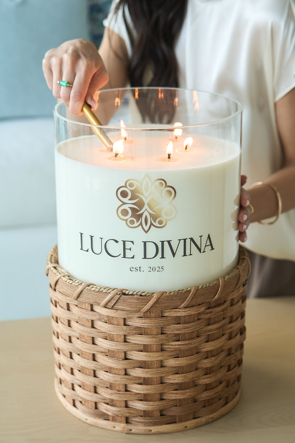 The thought process behind starting Luce Divina came from the desire to create more than just candles: we wanted to offer unique experiences with giant candles of 50 and 25 lbs, which don’t exist in the market. I noticed a gap for products that combine luxury, sustainability, and an artisanal, spiritual touch. Each candle is designed to evoke emotion, inspire mindfulness, and enhance the ambiance of a space, becoming an exclusive design piece that brings well-being and calm. For me, Luce Divina is the realization of a passion for craftsmanship, innovation, and creating special moments that transform any space.