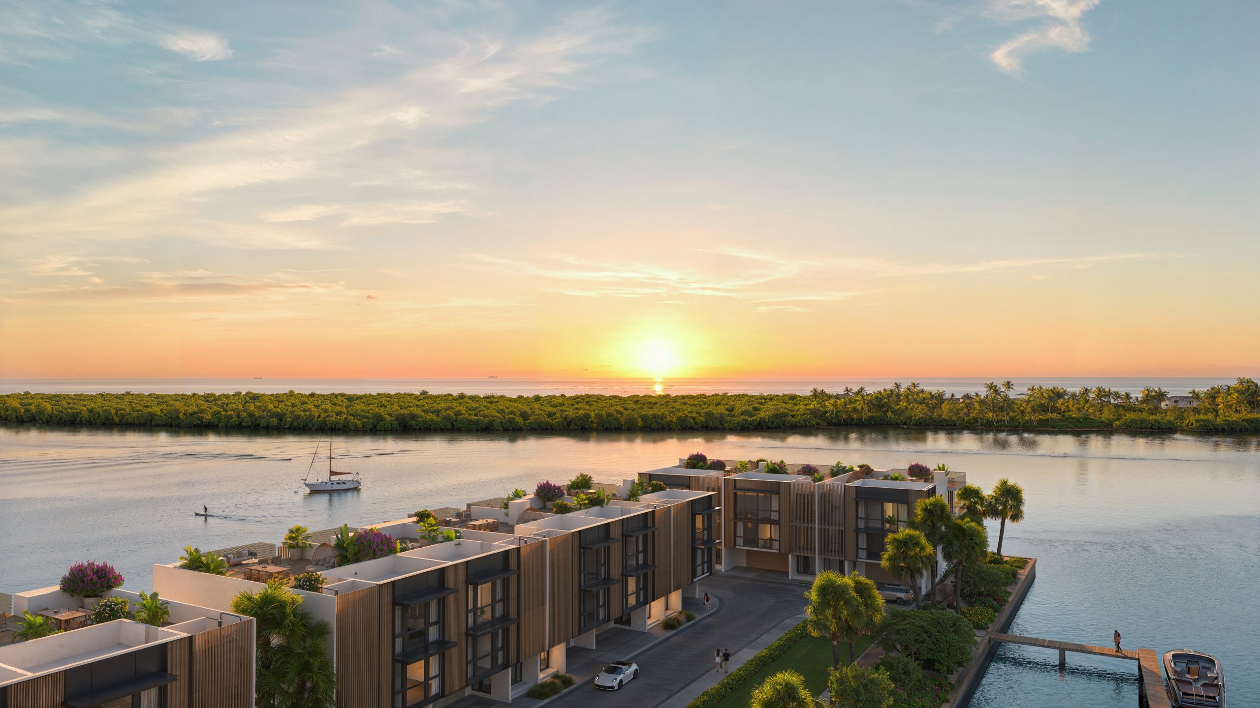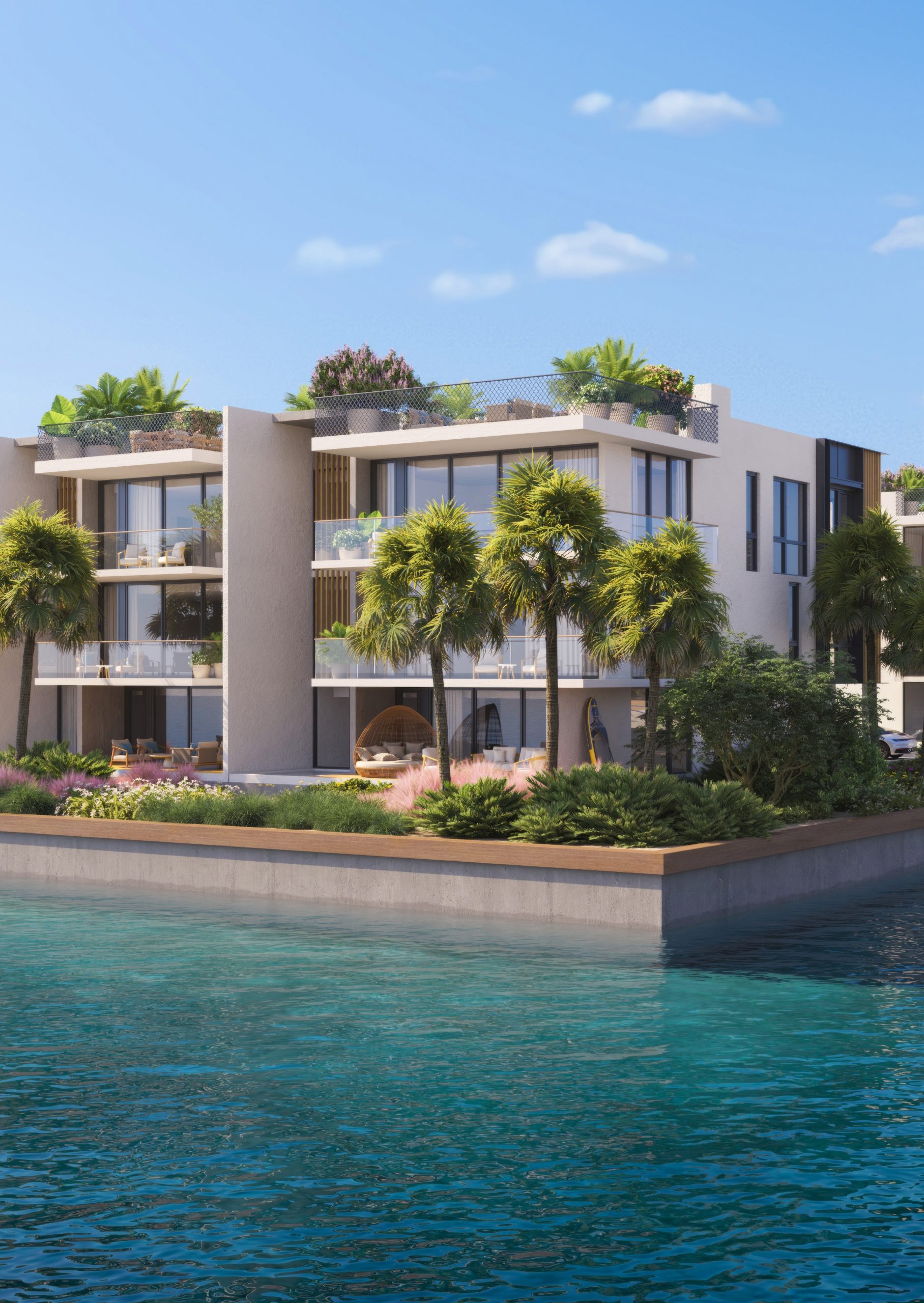 The first time I walked the land, I was so excited and literally raced home to set all the wheels in motion that are needed to start the lengthy but well-worthy process of development. I imagined how one lives at this wonderful setting day in and day out. The way the peninsula is angled allows for magnificent sunrises, huge floor-to-ceiling windows, large terraces, and views of boats going by. With tropical landscaping, it will have an instant “I am on vacation” feeling and a tranquility that stays with you every moment spent at your new home.