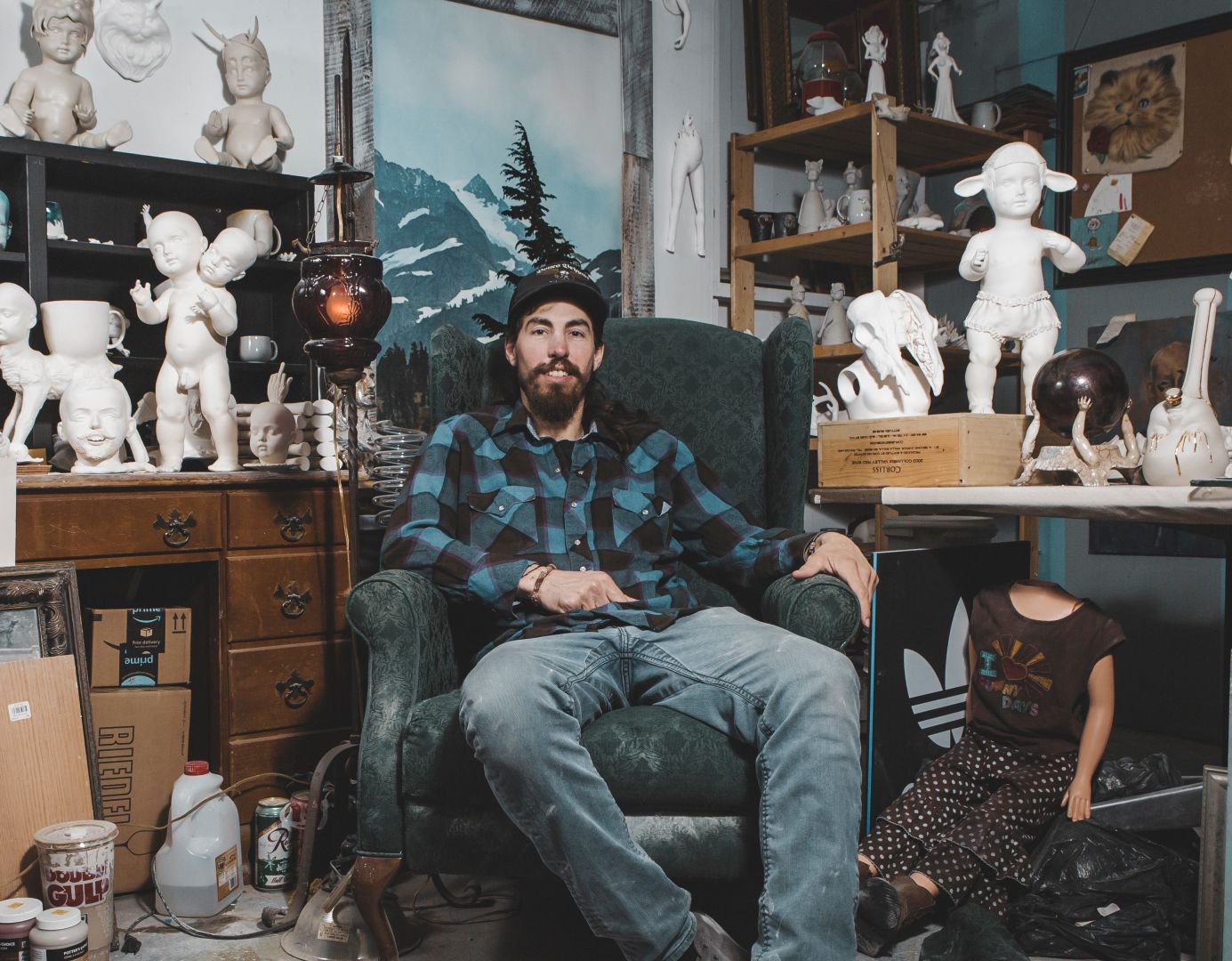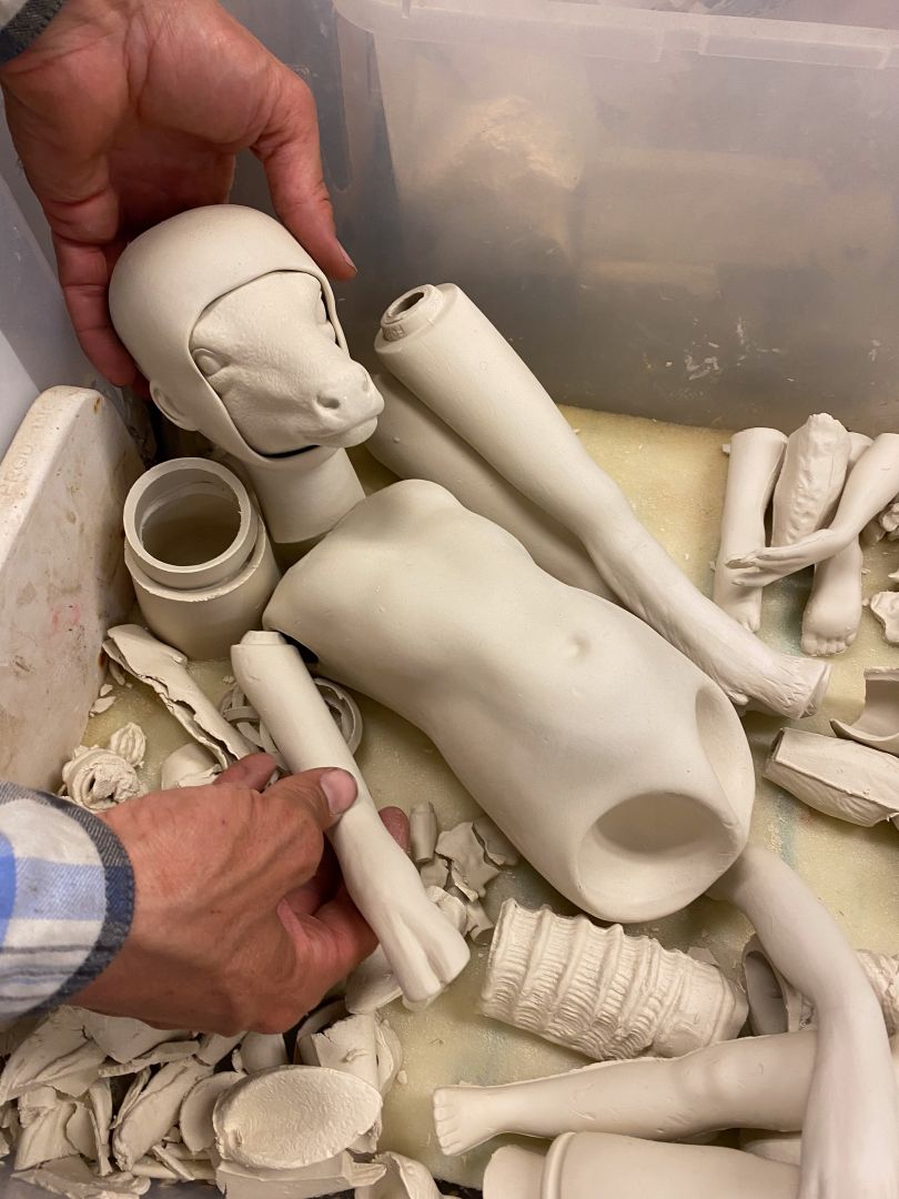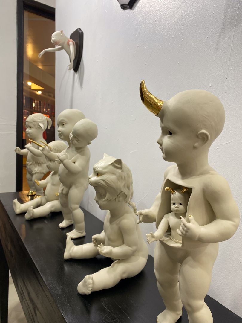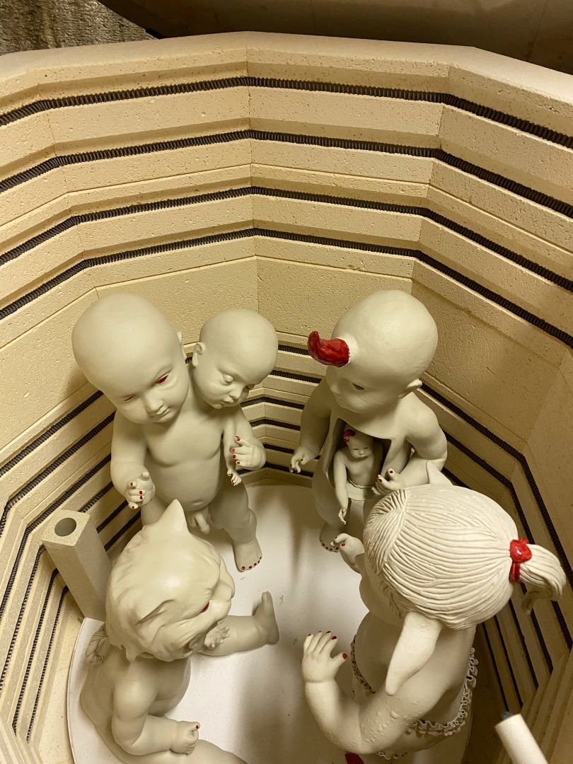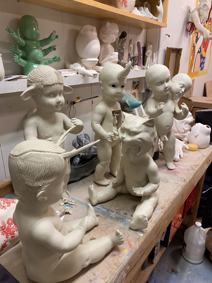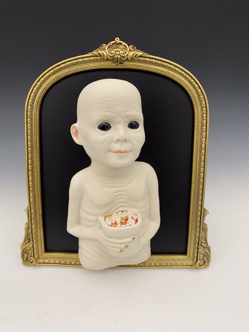 Essentially it all started in 2015 after a visit to an estate sale where I found a handful of plaster molds used for slip casting. I had studio space where I knew there were kilns around. I started playing around combining pieces of the molds, vintage doll parts, animals etc.. making fun obscure and some may say macabre artworks. I fell in love! So I just kept creating pieces and people started buying so I figured may as well start a business and see how it goes!